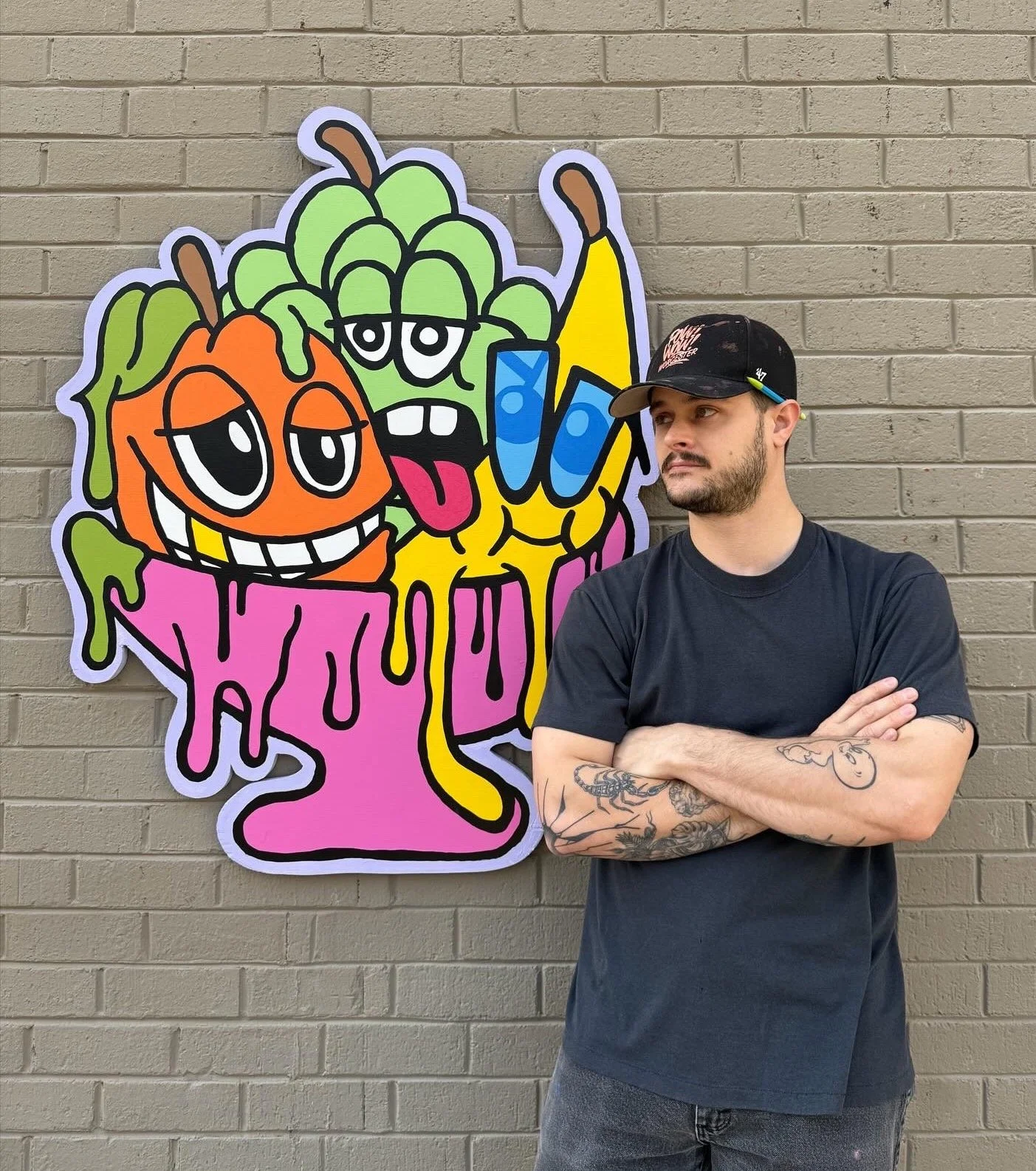 Taylor Marvenko is a Graphic Designer, Illustrator and Painter currently living in Baltimore, MD. His work is focused on pop-art, typically featuring 90’s nostalgia. His mediums include acrylic paint on canvas, graphic design, and clothing. In 2017 he moved to Los Angeles, CA for 4 years where he showed work in Gabba Gallery, and painted several street murals in the LA area. He moved back to his hometown in 2021 where he is now focused on Juice Club and his Bachelor of Arts degree in Graphic Design and UX.